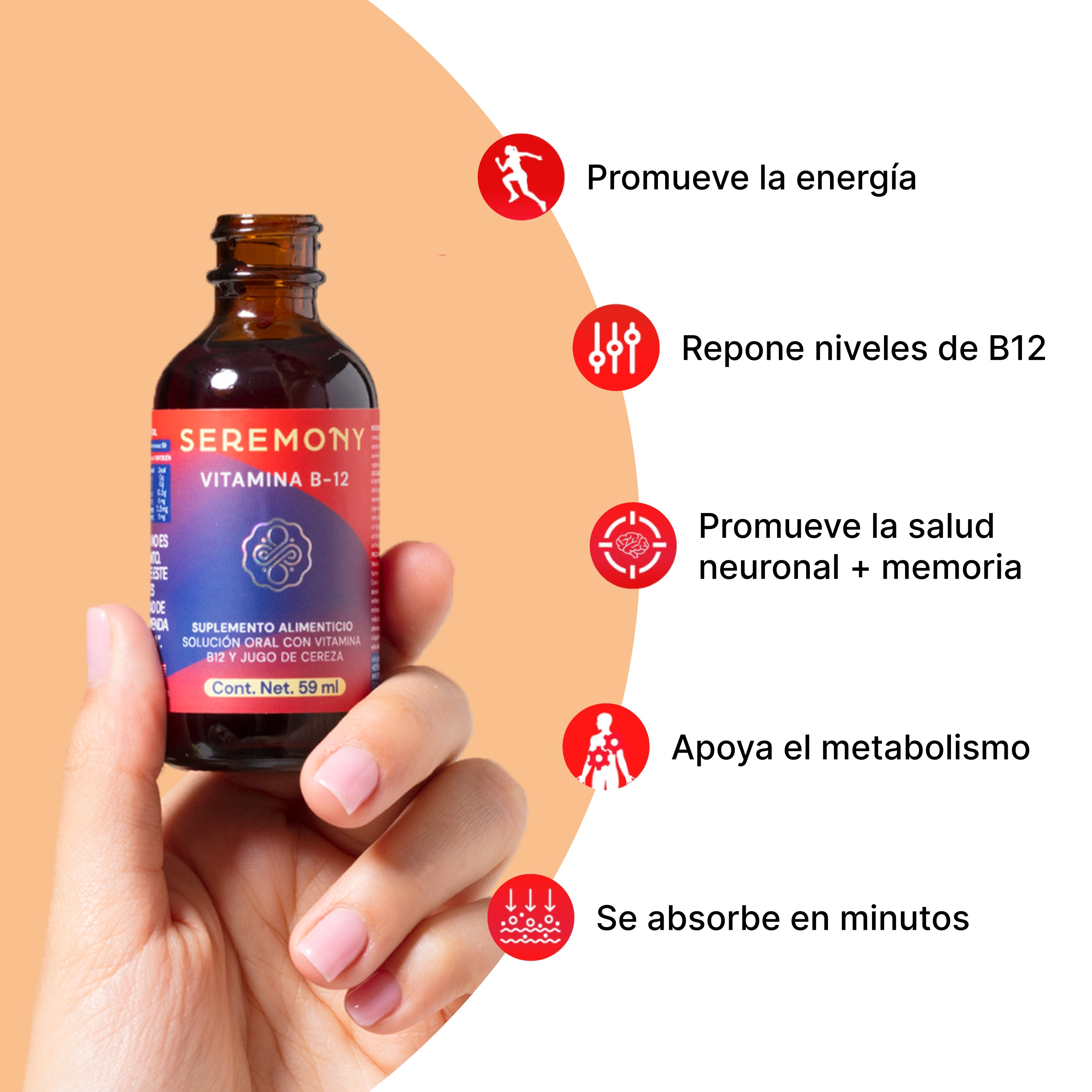 Vitamina B12 de fácil absorción. Presentación líquida con gotero para dosificar de manera simple.